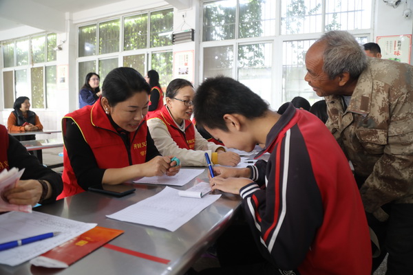 受助学生的家长及孩子们早早的来到交接现场,热情的向义工们介绍孩子们的家庭及学习情况,义工和资助人也主动和孩子们交流,询问孩子的学习情况并嘱咐孩子不要有压力,好好学习。