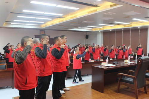大会开始,在执行会长高永涛的带领下全体义工起立面对会旗重温协会的誓词:我自愿参加开封市义工协会,严格遵守义工守则,积极参加义工服务,自觉履行义工义务。我承诺:尽己所能,不计报酬,帮助他人,服务社会,践行义工精神,传递爱心,传播文明,为建设团结互助、平等友爱、共同前进的美好社会贡献力量。