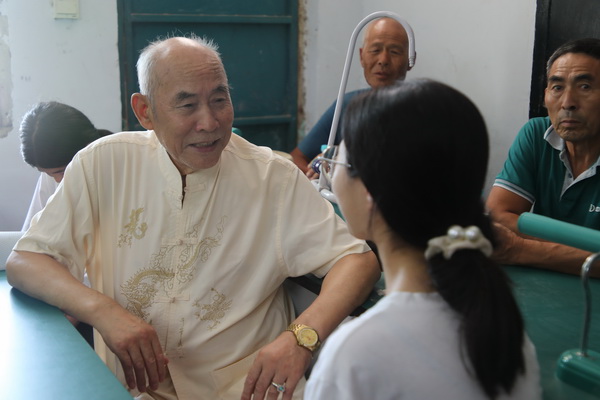 76岁的高德亮老先生与孩子们亲切交谈 摄影 宋军