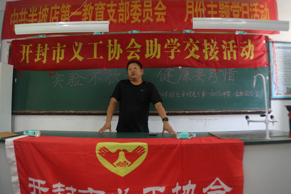 (公益记录者 徐建华报道)7月12日上午,星期六,烈日炎炎,晴空万里。开封市义工协会一行14人,冒着酷暑利用周末休息时间,驾驶着4辆私家车,兵分两路,一路由高永涛会长带领8名义工,驱车38公里,来到了市祥符区半坡店乡第一中学,为该乡21名品学兼优的生活遇困生发放了16800元的爱心助学金;另一路由义工李强带领5名义工,驱车20公里,来到祥符区八里湾镇第四中学,为该镇的4名品学兼优生活遇困生发放了3400元的爱心助学金。