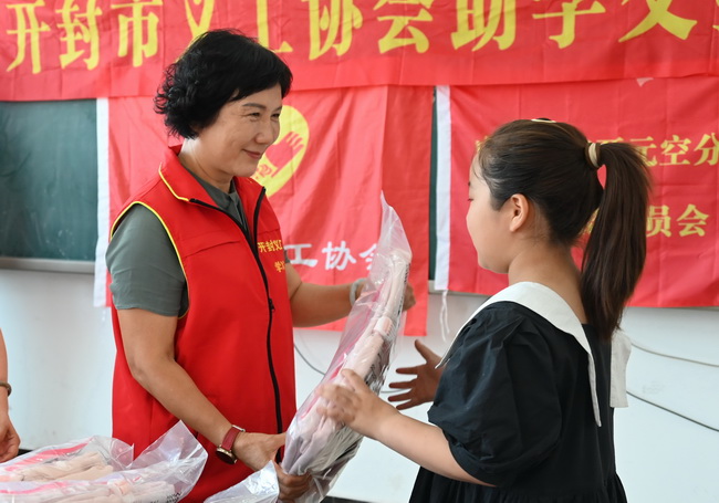 在祥符区曲兴镇第一中学的交接仪式上,义工范一博主持了这次交接仪式,他鼓励同学们别怕路远,只管往前闯。协会副会长范俊红代表协会致辞说:“眼前的风雨只是暂时,愿你们心怀鸿鹄之志,终成栋梁。”曲兴镇第一中学秦永立校长发言说:“多年来,在义工协会与爱心人士的守护下,让许多家庭卸下了重担。你们唯有发奋学习,才是对这份善意最好的回报。”受助学生代表黄慧冉说:“这份爱,我们会记在心里,更会传下去,也要成为给别人撑伞的人。”