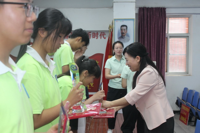 仪式上,刘兰芳女士首先向禹王台区实验中学今年考取好成绩位同学们表示祝贺,向禹王台区实验中学各位辛勤的老师们表示感谢!话虽不多,句句实实在在。