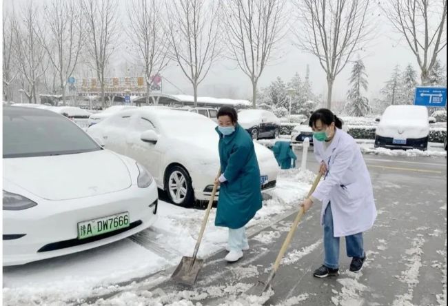 为了抢通道路,保障来院就诊及医院内部患儿的就医和通行安全,一大早,院党委带领一院四区行政职能科室人员分区域、有计划地开展除雪工作。