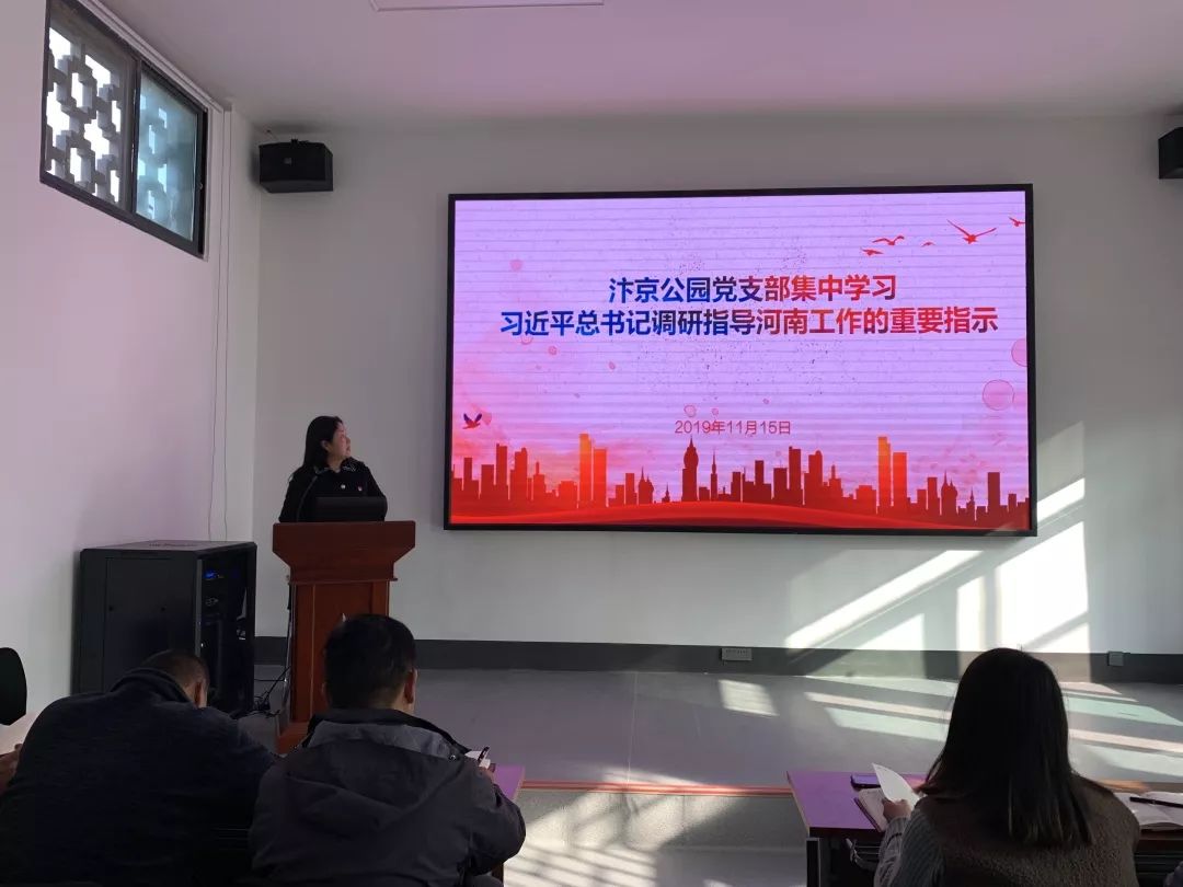 在汴京公园科普讲堂教室内的大彩屏上,党支部书记杜娟按照专题PPT课件的形式,系统讲述了习总书记几年来视察调研河南时的重要讲话精神,掀起学习贯彻习总书记重要讲话精神的热潮。她说,习总书记的讲话为做好新时代河南工作、推动主题教育高质量开展指明了前进方向、提供了根本遵循。要把学习贯彻习总书记考察调研河南时重要讲话精神,与学习贯彻习近平新时代中国特色社会主义思想结合起来,深刻领会精神实质,真正做到学深悟透。对标对表习总书记重要讲话精神找差距、抓落实,立足职能职责和“初心使命四问”进一步检视差距不足,研究改进措施,狠抓整改落实。