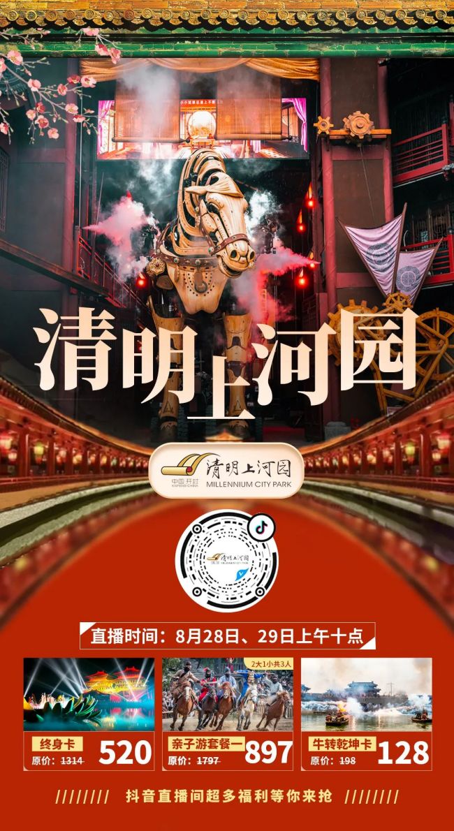 8月28日、29日10:00,清明上河园抖音直播间福利专场!超多产品!超低价格!超嗨气氛!等你加入!