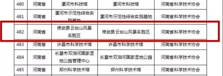 中国科学技术协会公布《2021-2025年全国科普教育基地第一批认定名单》云台山景区榜上有名!!
