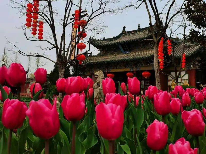 每年3月,小伙伴们都会到天波杨府赴一场浪漫的“春之约会”。今年的国际郁金香艺术节,天波杨府景区从荷兰引入了阿德瑞姆、朱迪斯、琳马克、大主教、世界之爱、阿福可等22个名贵郁金香品种。园内栽种郁金香20余万株,绚丽多姿的郁金香与宏伟的宋式建筑群巧妙的结合,既有大面积的郁金香栽植,令人感叹色彩赋予花朵的魅力,也有郁金香小景的靓丽点缀,让人惊艳其别具一格,独具匠心。