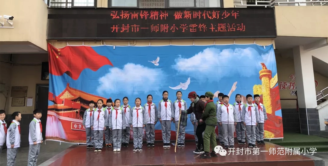 阳春三月,学习雷锋正当时。继爱心书屋捐赠活动后,开封市第一师范附属小学又利用周一国旗课程,继续学习和弘扬雷锋精神。